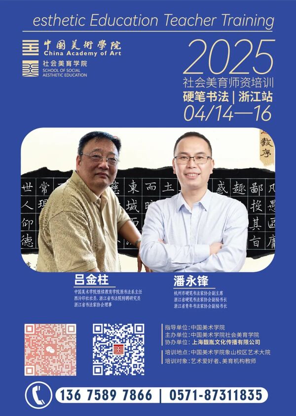“中国美术学院社会美育师资培训班”(硬笔书法专业 ),由中国美术学院作为指导单位,中国美术学院社会美育学院主办,同时邀请国内知名书法家,通过与专家导师们的零距离学习、系统专业化训练,创新教学模式,培养硬笔书法创作专门人才,将高校教育资源与社会人才培养相对接。