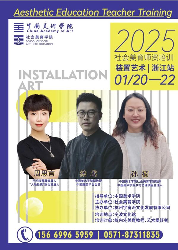为落实中共中央办公厅、国务院办公厅印发的《关于全面加强和改进新时代学校美育工作的意见》精神,全面加强和改进新时代学校美育工作,提升国内边远民族地区美术教师和社会美术教育从业人员师资执教能力,特开设“中国美术学院社会美育师资培训班”(装置艺术专业),欢迎社会艺术爱好者、美术教学岗位的从业人员踊跃报名。
