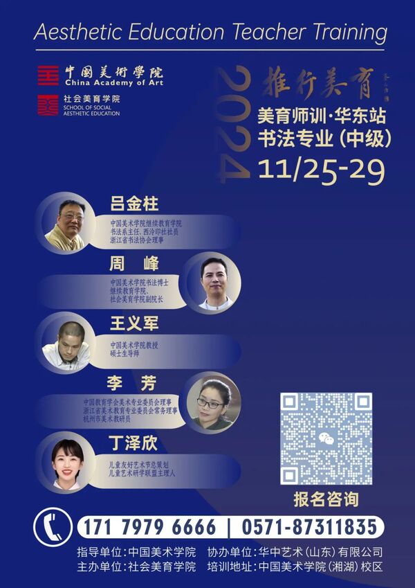 为落实中共中央办公厅、国务院办公厅印发的《关于全面加强和改进新时代学校美育工作的意见》精神,全面加强和改进新时代学校美育工作,提升国内边远民族地区美术教师和社会美术教育从业人员师资执教能力,特开设“中国美术学院社会美育师资培训班”(书法专业)欢迎全国各省份、直辖市学员踊跃报名。