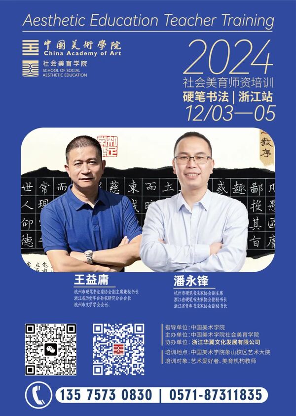 “中国美术学院社会美育师资培训班”(硬笔书法专业),由中国美术学院作为指导单位,中国美术学院社会美育学院主办,同时邀请国内知名硬笔书法家,通过与专家导师们的零距离学习、系统专业化训练,创新教学模式,培养硬笔书法创作专门人才,将高校教育资源与社会人才培养相对接。