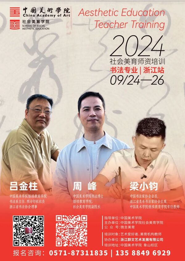 为落实中共中央办公厅、国务院办公厅印发的《关于全面加强和改进新时代学校美育工作的意见》精神,全面加强和改进新时代学校美育工作,提升国内边远民族地区美术教师和社会美术教育从业人员师资执教能力,特开设“中国美术学院社会美育师资培训班”(书法专业)欢迎全国各省份、直辖市学员踊跃报名。