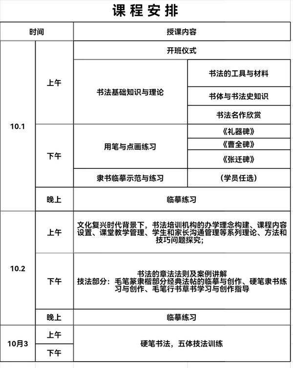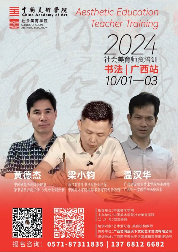 为落实中共中央办公厅、国务院办公厅印发的《关于全面加强和改进新时代学校美育工作的意见》精神,全面加强和改进新时代学校美育工作,提升国内边远民族地区美术教师和社会美术教育从业人员师资执教能力,特开设“中国美术学院社会美育师资培训班”(书法专业)欢迎全国各省份、直辖市学员踊跃报名。