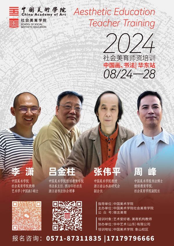 “中国美术学院社会美育师资培训班”(中国画、书法专业),由中国美术学院作为指导单位,中国美术学院社会美育学院主办,同时邀请国内知名书法家,通过与专家导师们的零距离学习、系统专业化训练,创新教学模式,培养书法创作专门人才,将高校教育资源与社会人才培养相对接。