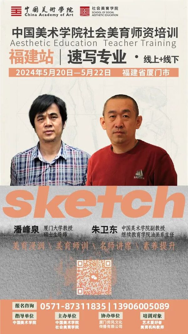 “中国美术学院社会美育师资培训班”(速写专业 ),由中国美术学院作为指导单位,中国美术学院社会美育学院主办,同时邀请国内知名书法家、国画家,通过与专家导师们的零距离学习、系统专业化训练,创新教学模式,培养速写创作专门人才,将高校教育资源与社会人才培养相对接。