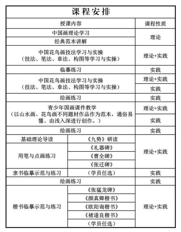 为落实中共中央办公厅、国务院办公厅印发的《关于全面加强和改进新时代学校美育工作的意见》精神,全面加强和改进新时代学校美育工作,提升国内边远民族地区美术教师和社会美术教育从业人员师资执教能力,特开设“中国美术学院社会美育师资培训班”(中国画、书法专业)欢迎全国各省份、直辖市学员踊跃报名。