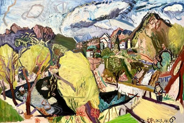 2018年 作品《山里人家》入选中国美术家协会主办的开放与融合——首届大芬国际油画作品双年展