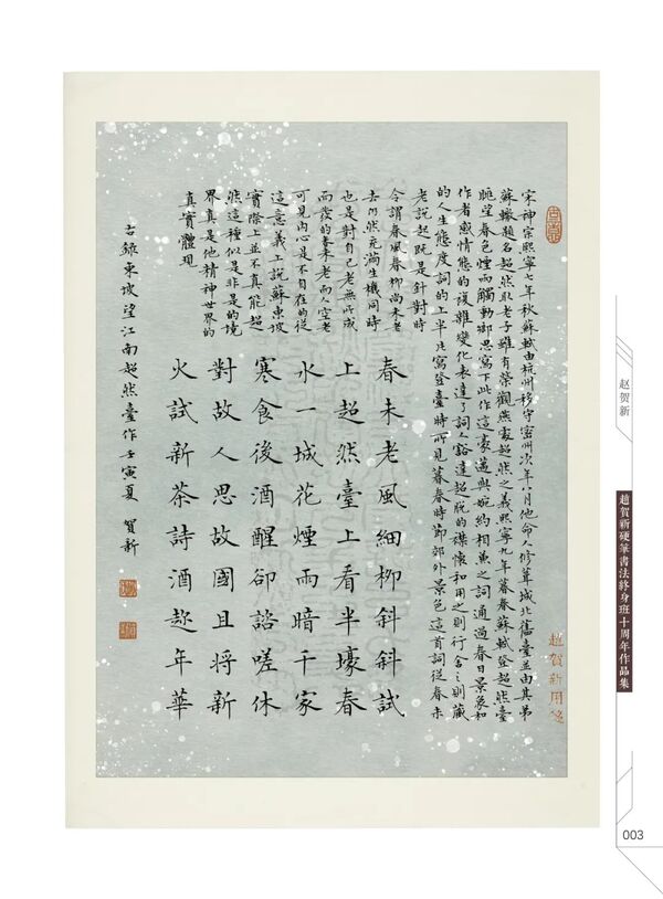 吉林长春人。毕业于日本静冈文化艺术大学,主修国际文化专业。原《中国钢笔书法》杂志特约编辑,职业书法家。第一届、第二届、第四届全国硬笔书法教学精英高级研修班专家导师。2012年创办赵贺新硬笔网络教学终身班,迄今为止海内外学员近5000人,打卡营学员逾80000人次。“赵贺新少儿硬笔书法”品牌海内外一二级合作校近500所。2020年12月,赵贺新老师在“2020回响中国腾讯教育年度盛典”中,被评为“2020年度教育行业影响力人物”。