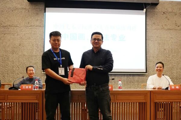中国美术学院继续教育学院、社会美育学院院长竺照轩向学员代表赠送文化礼品。