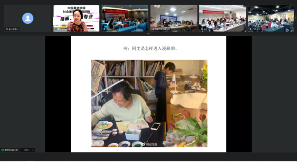 金幸佳老师为学员们讲授《漫画:一门独特的语言艺术》、《从文本到图像——插画创作中的“语-图”关系》课程。