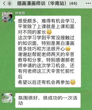南宁站由广西艺术学院美术学院装帧插图专任教师王珏老师讲授《漫画、插画课程》、广西艺术学院美术教育学院副院长文海红教授讲授《美术教育课程》、广西文城乡土文化艺术研究院院长黄文诚老师讲授《青少年漫画基础》课程。