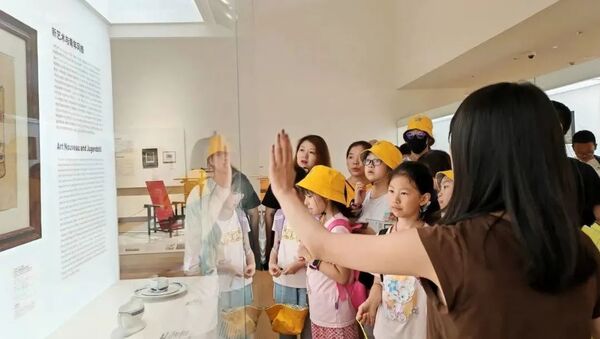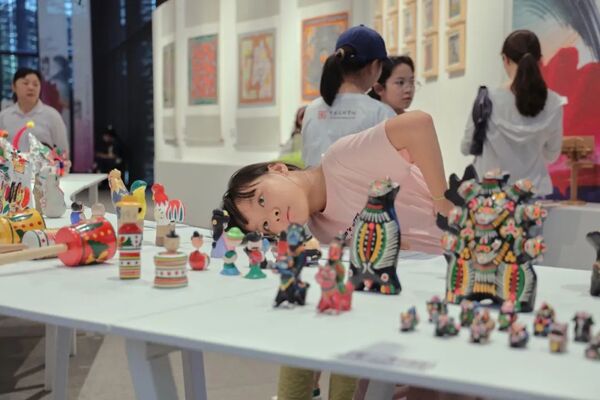 研学导师向小朋友们介绍馆内陈列的各类民间艺术品的渊源和历史,带领大家感受传统文化的恒久魅力,引导孩子们传承民间艺术的精髓。