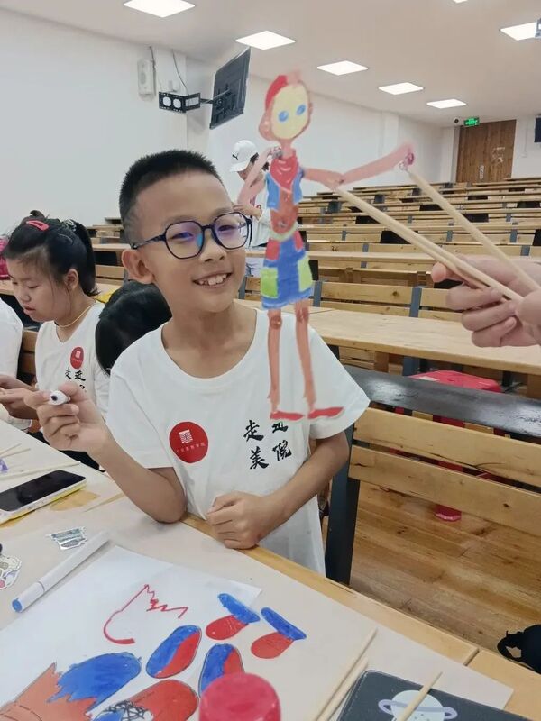在研学专业教室,资深的皮影戏课程导师详细讲解了皮影戏的历史演变、地域特色等方面的知识,让孩子们更加深入的了解这一非遗技艺的文化内涵。
