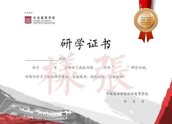 在美院研学教室,社会美育学院研学导师们为小学员们颁发了由中国美术学院社会美育学院授予的结业证书以及国美纪念周边。