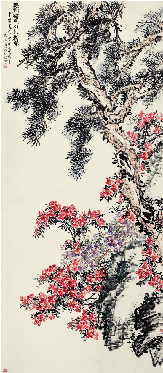 1928年蔡元培先生以“美的心开启民心”为希冀,指示林风眠先生创建国立艺术院。在那样一个西学东渐的时代,传统中国画临对着严峻的挑战。以潘天寿为首的中华艺者,临狂澜而不惧,扶巨壑于将倾,以天地立心、生民立命的担当,提出中西文化分峰峙立的理念,树起中国绘画承传与拓新的旗帜。20世纪40年代末,黄宾虹先生南下,在栖霞岭结庐教习,烟云积墨,沧桑点染,弘扬民学的理想,挥洒黑密沉厚的胸臆,塑造中国传统山水画最后的高峰。20世纪50年代初,在中国画改造的转折中,“浙派人物画”横空出世,开启中国人物画表现时代的历史篇章。20世纪50年代末,潘天寿先生提出人、山、花分科的思想,拟定临摹心追的课程结构,确立了师古人、师造化,进而师心独造的中国绘画教学理念。“文化大革命”后,学院复苏,国门洞开,西方新艺术蜂拥而入,中国画的传承与出新面临着挑战。潘公凯先生提出“两端深入”的策略,揭示了中国绘画传承与拓展的双向命题。新世纪肇始,中国美院提出中国画学复兴的理想,将中国画技艺与理论研究提升到画学的层面上,从理论思想、品第风格、方法技艺、传承课徒、材料掇英、诗词题跋、中西比较等方面开展系统研究,溯源玄览,论衡古今,锻造中国画系统研究的高峰。