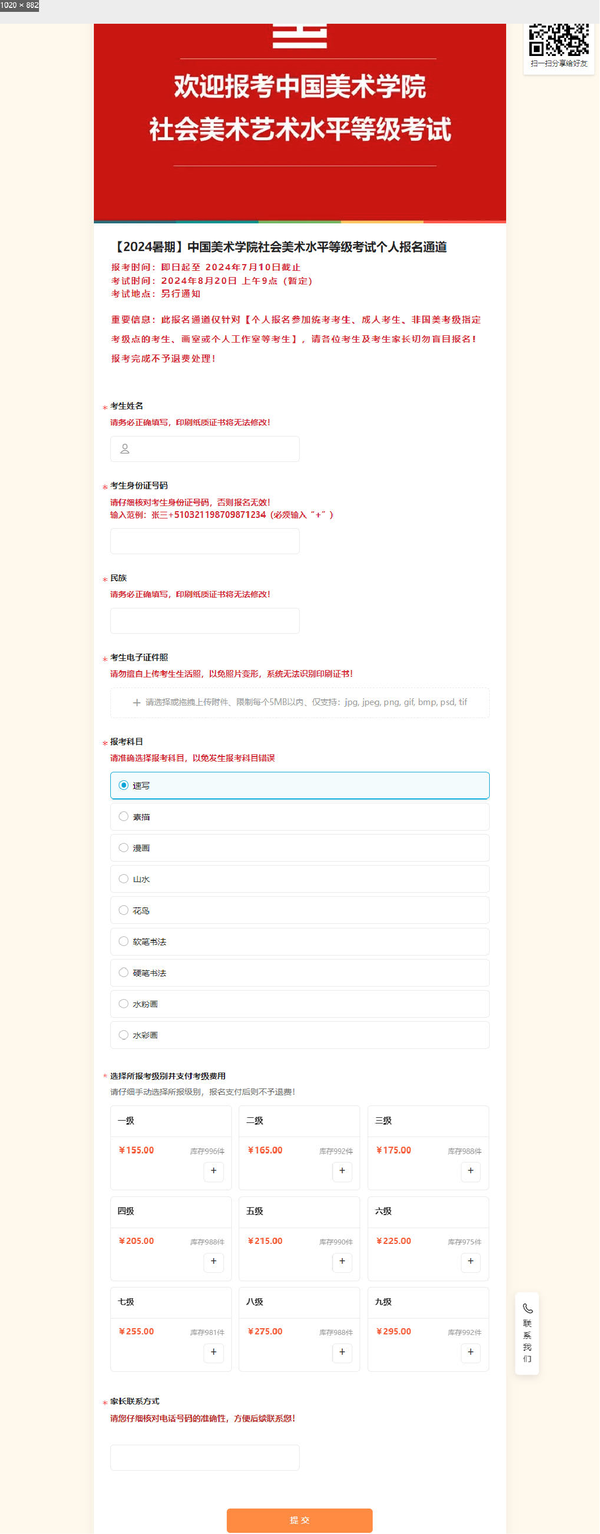 2024年6月14日,考级中心在微信公众号上发现该单位在<考级中心 中国美术学院成都考级2024-06-13 21:23 四川>发布【个人报考】中国美术学院2024年暑期社会美术(书法)水平等级考试个人报考通知一事,考级中心根据通知内容发现该单位收费情况与中国美术学院社会艺术水平考级中心发部的收费标准内容不附,收费明显超出中国美术学院社会艺术水平考级中心规定范畴(详情见相关图片)。违反中国美术学院社会艺术水平考级中心承办单位管理办法及相关规定。