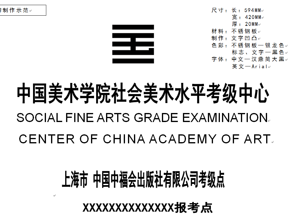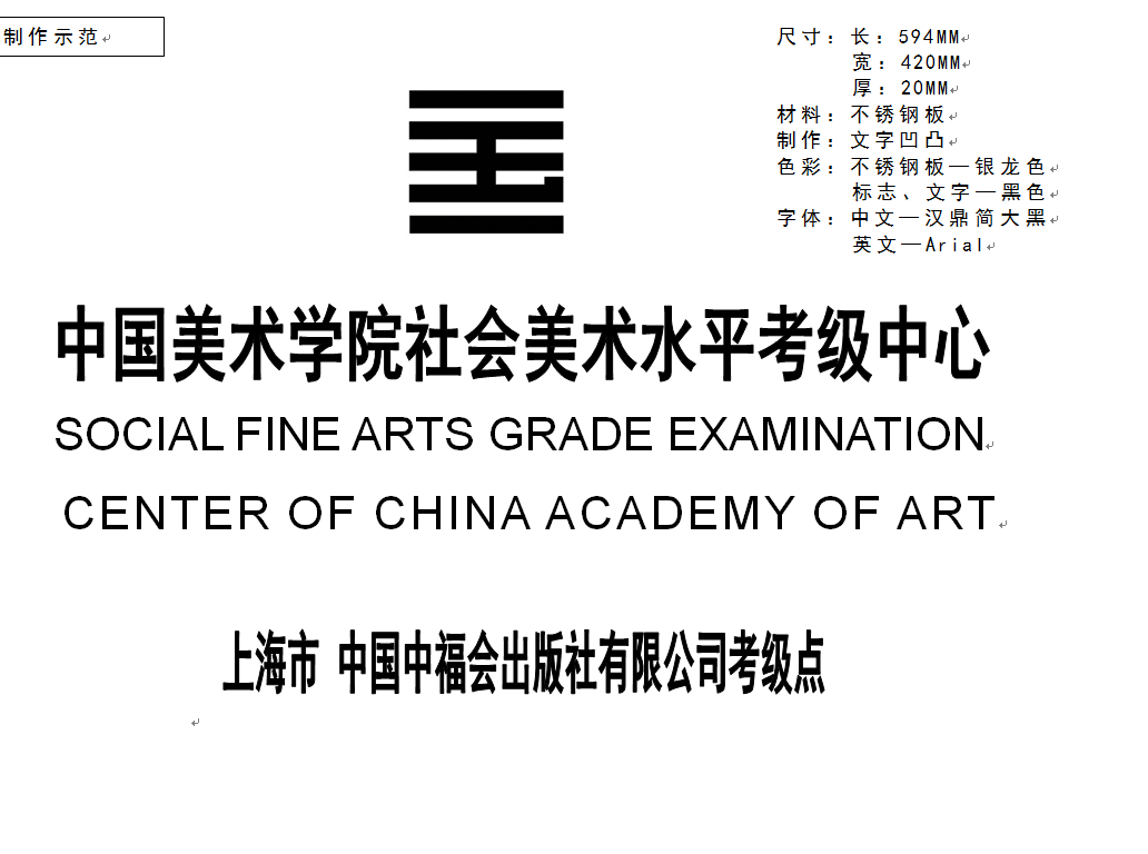 鉴于全国范围内各考点铜牌制作标准不一,部分地区承办单位宣传用语失当,为规范考级活动宣传行为,现经中国美术学院社会美术水平考级中心考级工作专项会议研究决定,各考点铜牌制作标准如下: