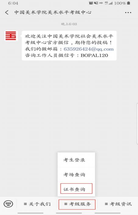 使用微信搜索“中国美术学院美术水平考级中心”,或者扫描下 方二维码关注公众号