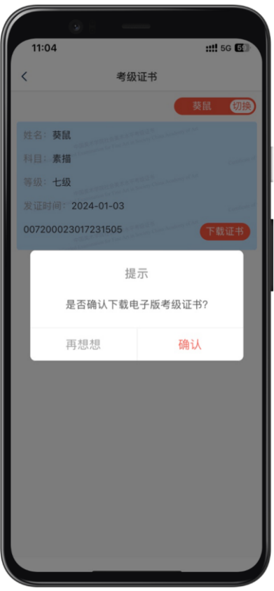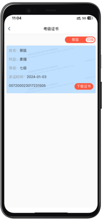 证书查看-点击证书卡片信息,可进行电子证书查看。